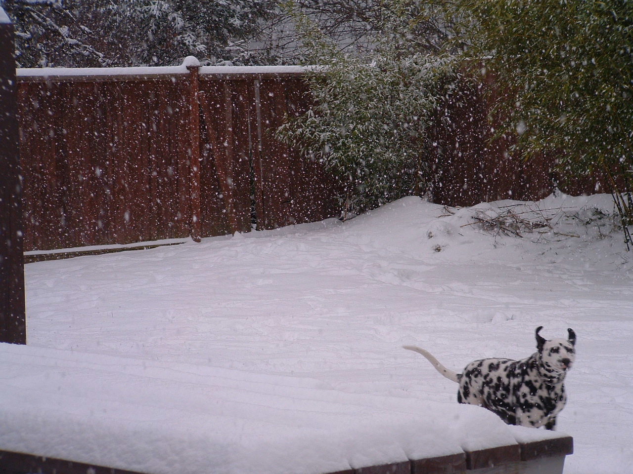 Despite her lack of cold weather fur, Sarrah excitedly danced in our rare snow. Many years, we do not get any snow near sea level. Some winter’s we get a trace, others an inch or so as we did for Sarrah’s first, possibly instilling a lifelong zest for snow play.