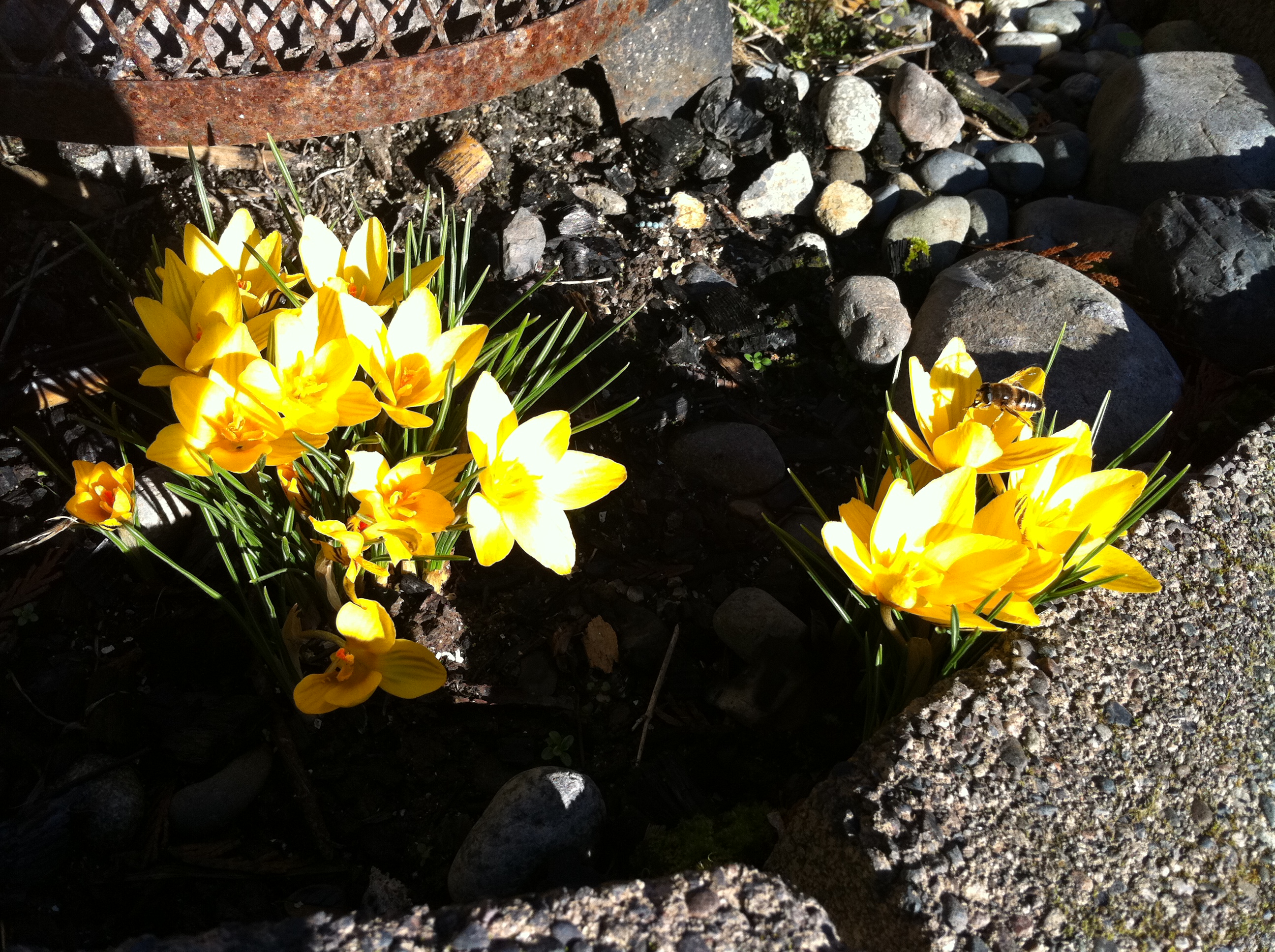 Hello! Spring was aptly named-all of a sudden, one day, there it is! Plants awaken with… birds singing the praises of its arrival. Some years our spring sneaks in early, at the mercy of winter. Bulbs defiantly peak up in various yard borders, returning the favor of past work, giving a hint of color and brighter days to come. If looked at closely enough, buds appear on dormant trees showing signs of waking up, some flashing peaks of pink and white flowers. Soon these trees will make a scented canopy over some sidewalks. Lawns begin to wake up and grow erratically, with some darker green fertilized spots. Unfortunately this growth brings about the noisy season of the obnoxious grass cutting and mechanized yard maintenance machines.