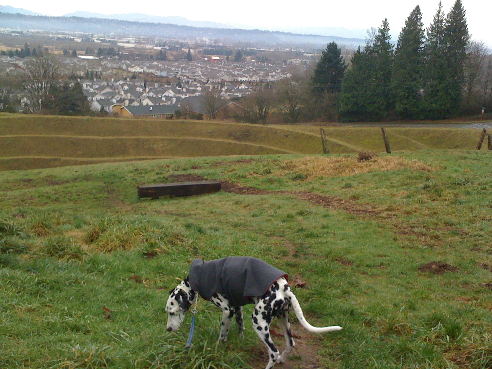 I doubt Sarrah really noticed much of the view as she was typically so excited running and sniffing, perhaps when time slowed her some of the surroundings became more apparent. On clear days Mount Rainier can be viewed to the south, on foggy days the over-developed valley disappears.