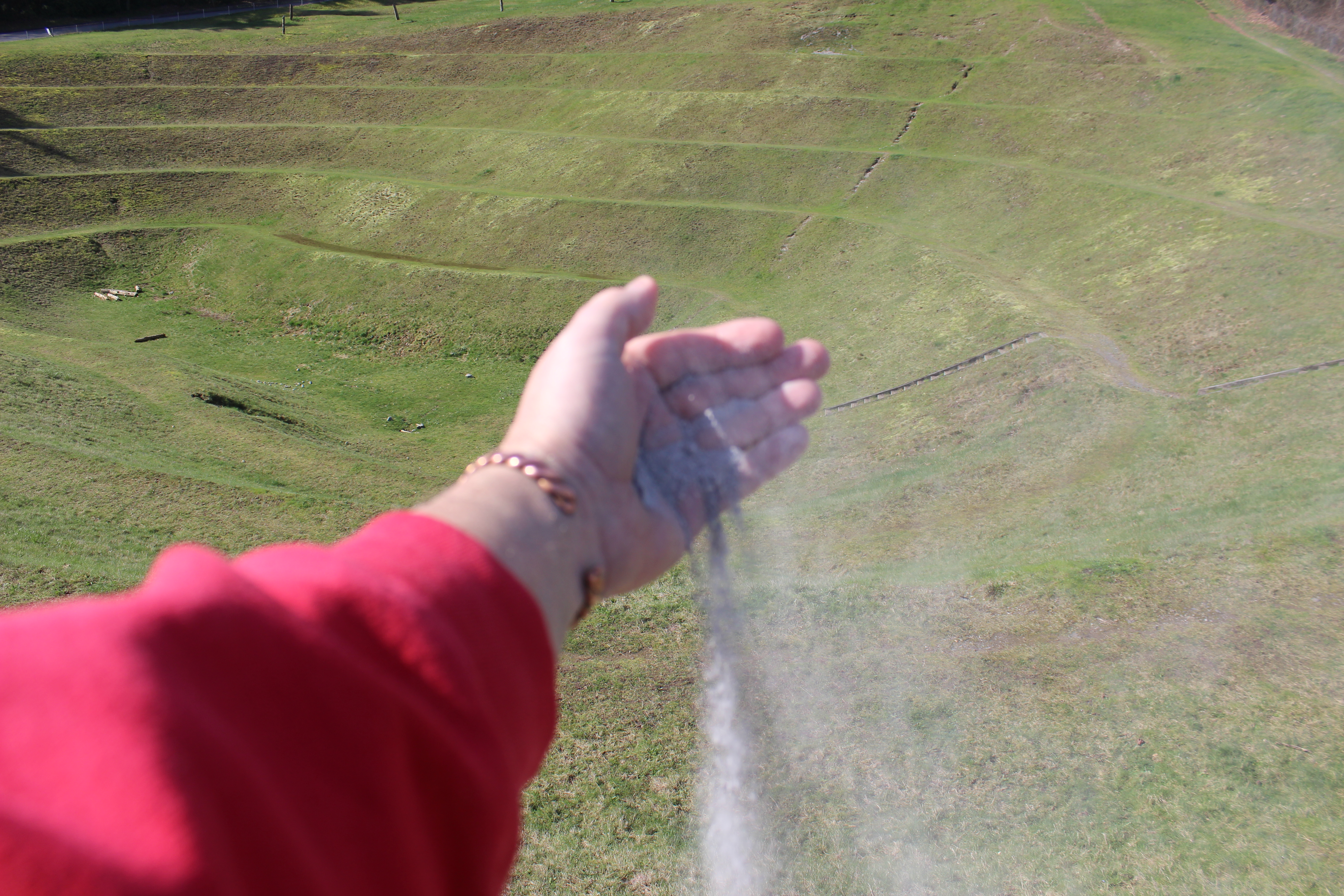 A steep winding road drops from our plateau down around an interesting earthen grassy funnel-shaped field and on into the Kent Valley. I drove this cut-off route many times and never stopped, over several years… I never stopped. Until I had a speckled co-pilot, I never stopped to visit this place.
