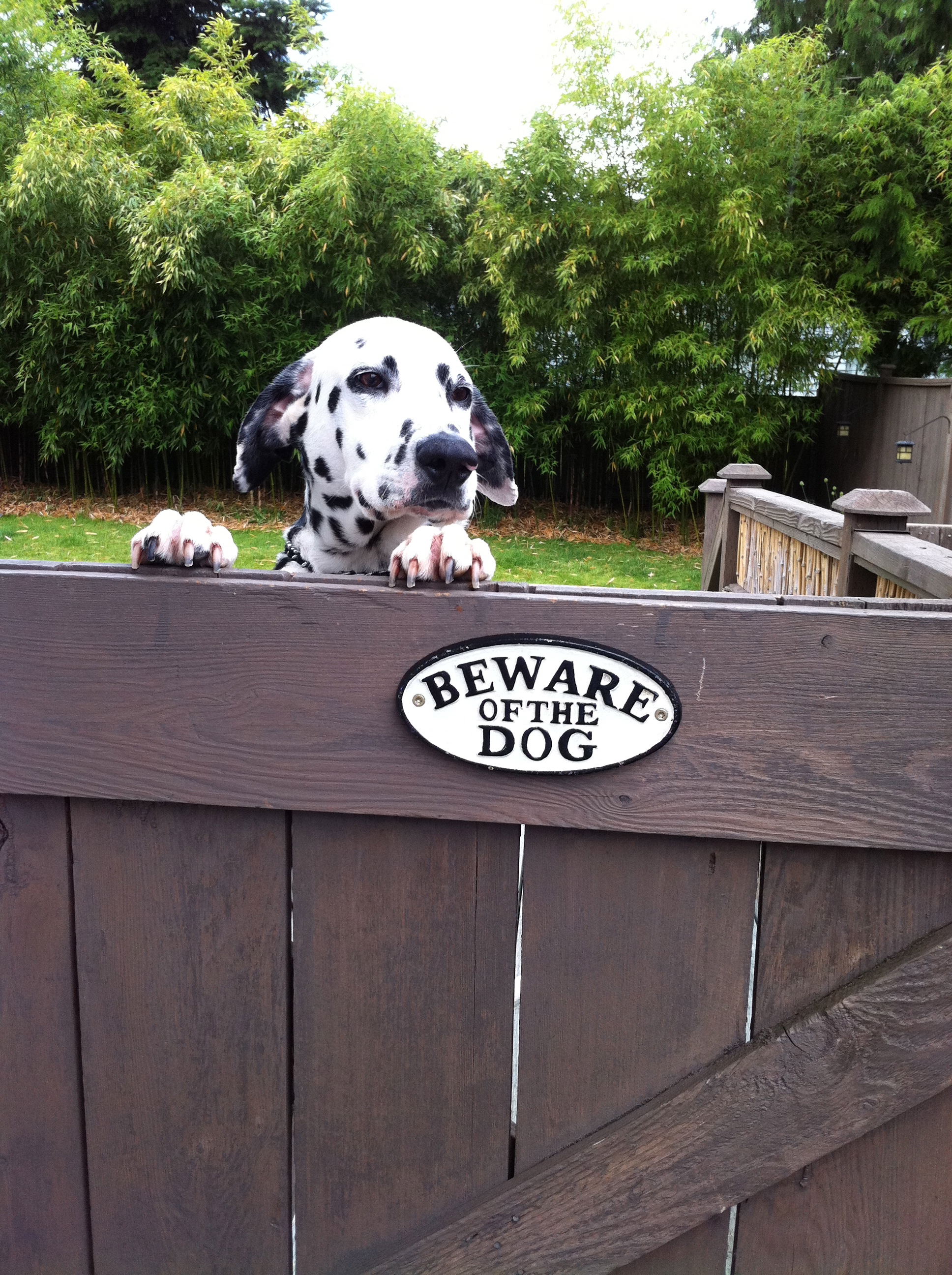 The story was put out on the web by Jodie Ray Kelley, who founded and runs the Dalmatian Rescue of Puget Sound organization.  This posting was about a dog who was rescued for a financially impacted family in California, who could not keep the five-year-old Shelby and her brother.  Seems California has a quick death penalty for dogs without homes so Jodie went down and brought a few back.  Two of these dogs had been together since birth, so efforts were taken to find one home for both of them.  After a few months of issues, the male was adopted, but not Shelby.  Apparently she liked living with Jodie and learned that causing problems… got her returned.  The post had a worn tone and a few pictures.